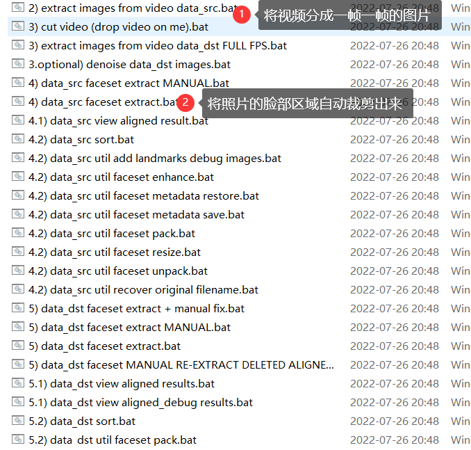 这个流程就是我们之前讲的常规流程,只是训练的模型换成了AMP,并且还少了一些步骤。因为最终我们将要应用到DeepFaceLive中,所以常规流程中的应用模型和合成视频就不需要了。